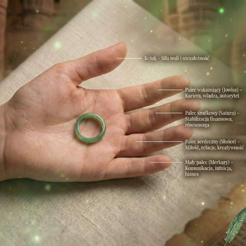 Następnym razem, gdy poczujesz, że stres Cię zalewa — nie sięgaj po telefon. Dotknij pierścionka. Jadeit jest naturalnie zimny — i ten chłód działa na Twój układ nerwowy jak hamulec. To nie metafora. To fizyka. Zimny, gładki kamień na skórze natychmiast przenosi Twoją uwagę z myśli na ciało.